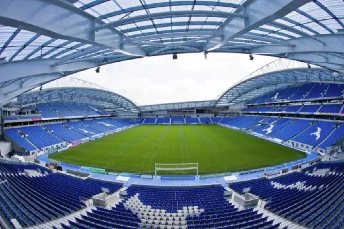 The Amex Stadium is approximately a 10-minute walk along the main pathway.